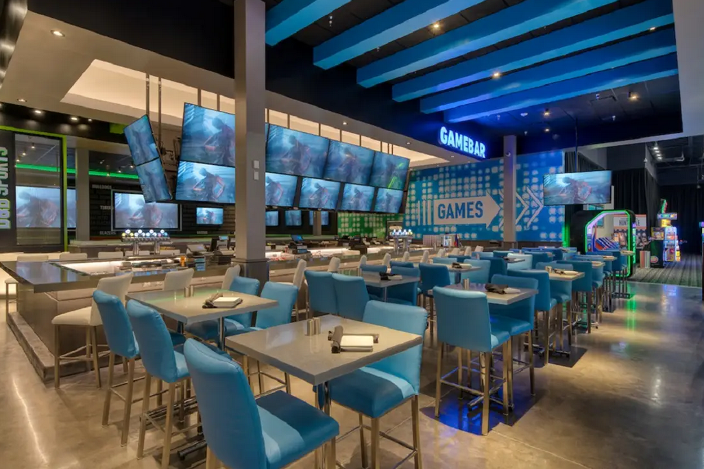 Eat, Drink & Play with a full restaurant, bar and arcade located right across the parking lot.